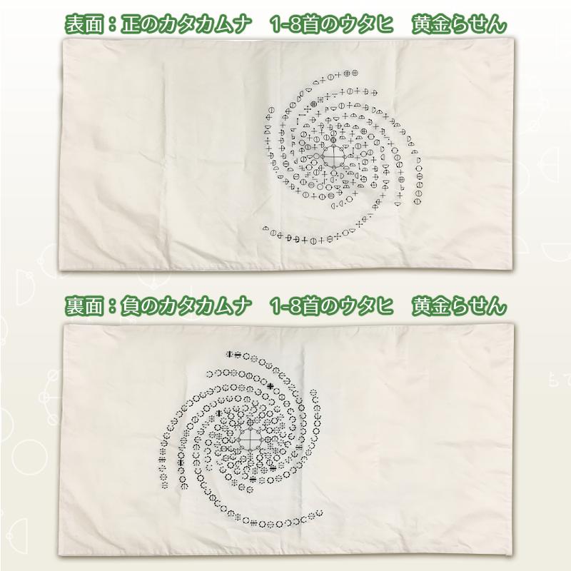 カタカムナ 枕カバー/1-8首合一 << 前のページに戻る 商品説明 カタカムナ 第1-8首合一 80首の中から特にパワフルな1-8首のウタヒを黄金らせんにしたもの。 黄金らせんにすることにより、1-8首のパワーがより強力になった図象です。 サイズ 83cm×42.5cm(筒形タイプ) 素材 綿100%