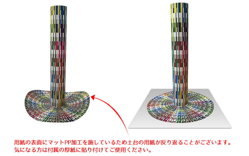 | サイズ | 作成前用紙:サイズ297×420mm 完成サイズ:高さ242mm・土台底面直径173mm |